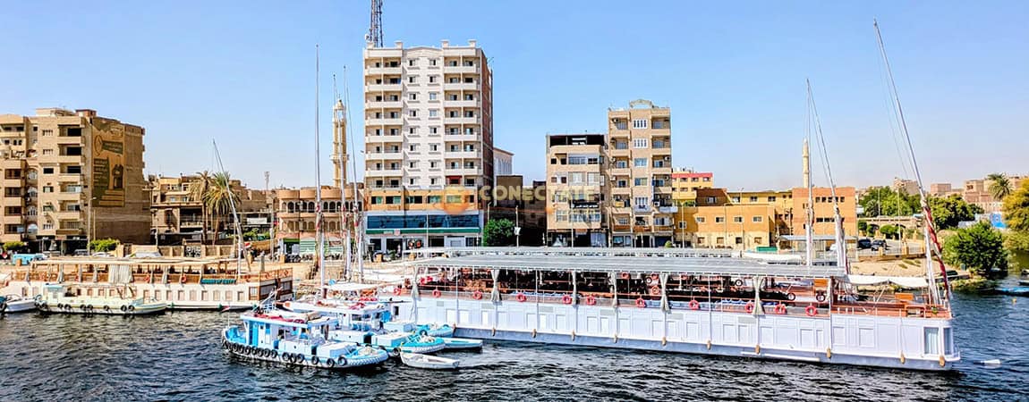 Crucero por el Nilo. Un importante río de África que fluye hacia el norte hasta el mar Mediterráneo, es esencial para los países más áridos del norte de África, incluyendo proporcionado la mayor parte del agua utilizada para los cultivos. Para muchos visitantes, un crucero de varios días por el Nilo es una forma muy relajante de contemplar los monumentos y templos en las orillas del río en la ruta entre Luxor y Asuán.