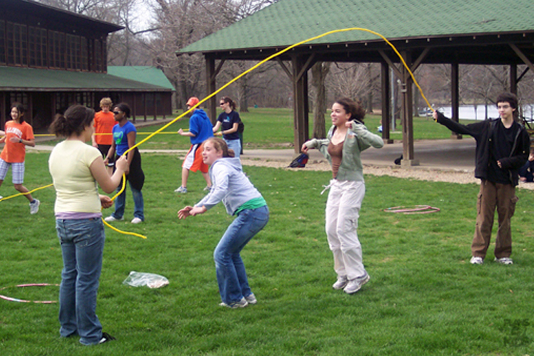 Este se juega tanto de forma individual como en conjunto, consiste en lanzar la cuerda y una o dos personas la saltan sin fallar, y quien tropieza pierde. En éste juego se cultiva la coordinación, agilidad y rapidez.